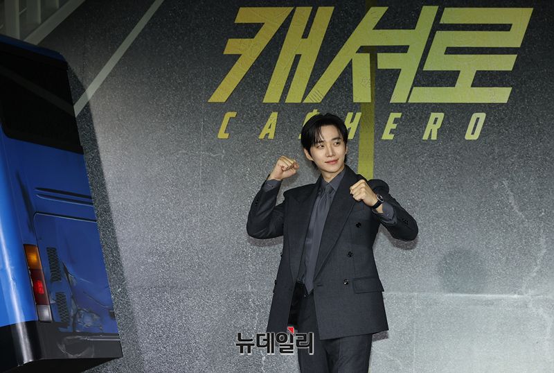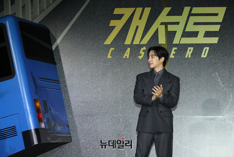 배우 이준호가 22일 오전 서울 강남구 웨스틴 서울 파르나스에서 열린 넷플릭스 드라마 '캐셔로(연출 이창민)' 제작보고회에서 포즈를 취하고 있다.