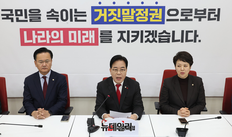 [포토] 기자간담회 갖는 송언석 국민의힘 원내대표