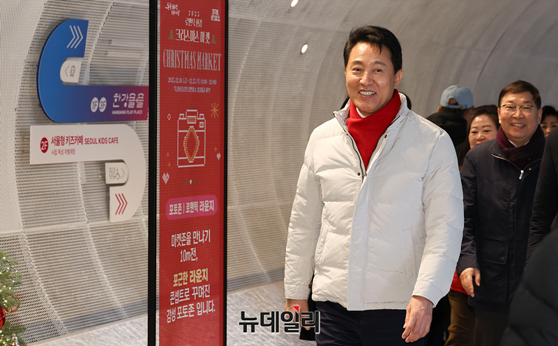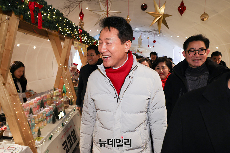 [포토] 크리스마스 마켓 행사장 찾은 오세훈 서울시장