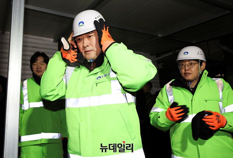 장동혁 국민의힘 대표가 26일 오전 서울 도봉구 자원순환센터에서 국민의힘 약자와의동행위원회 봉사활동을 위해 이동하고 있다.