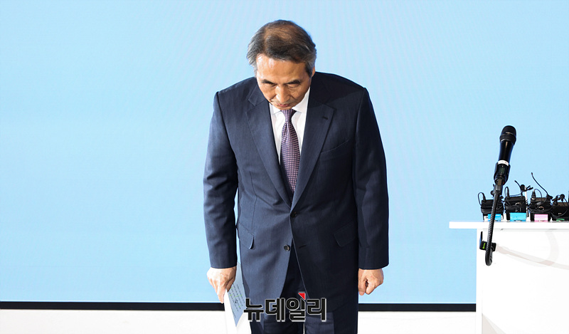 민중기 특별검사가 29일 오전 서울 종로구 KT 광화문 웨스트빌딩에서 인사하고 있다.