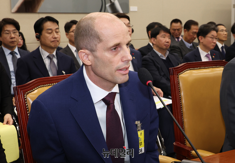 해롤드 로저스 쿠팡 대표이사가 30일 오전 국회에서 열린 쿠팡 침해사고 및 개인정보 유출, 불공정 거래, 노동환경 실태 파악과 재발방지 대책 마련을 위한 연석 청문회에서 의원들의 질문에 답하고 있다.