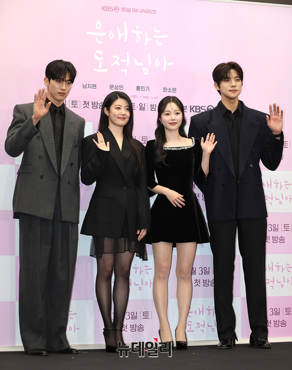 주연 배우들이 30일 오후 서울 마포구 스탠포드호텔 서울에서 열린 KBS2 토일미니시리즈 '은애하는 도적님아(연출 함영걸, 극본 이선)' 제작보고회에서 포즈를 취하고 있다.