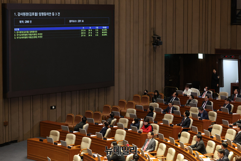 김호철 감사원장 임명동의안이 30일 국회에서 열린 본회의에서 가결되고 있다.