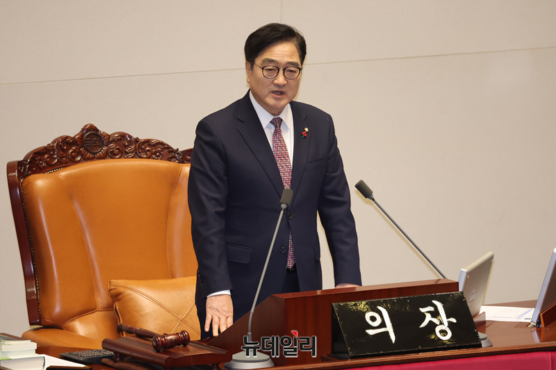 우원식 국회의장이 30일 오전 국회에서 열린 본회의에서 발언하고 있다.