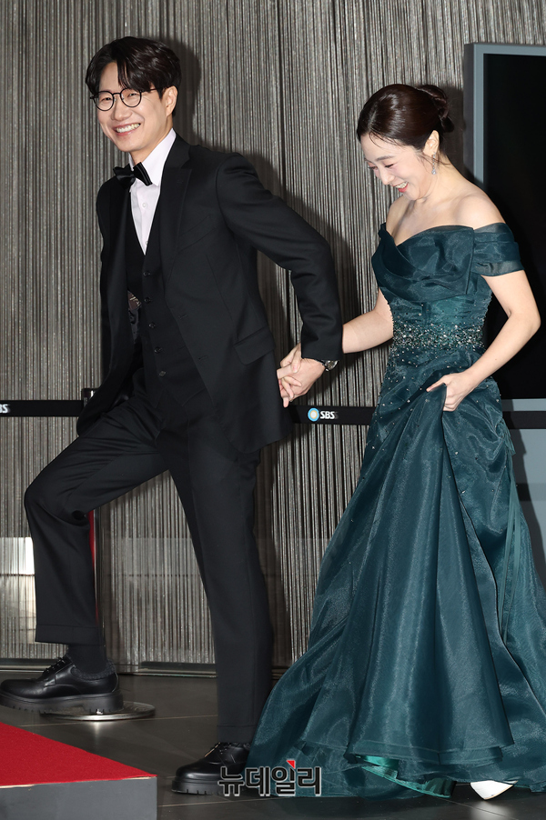 조우종, 정다은 부부가 30 오후 서울 마포구 SBS 프리즘센터에서 열린 SBS연예대상 시상식 포토월에서 포즈를 취하고 있다.