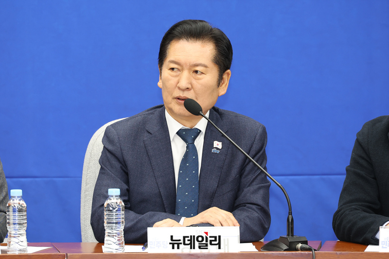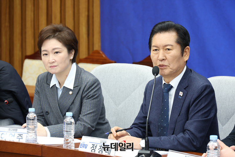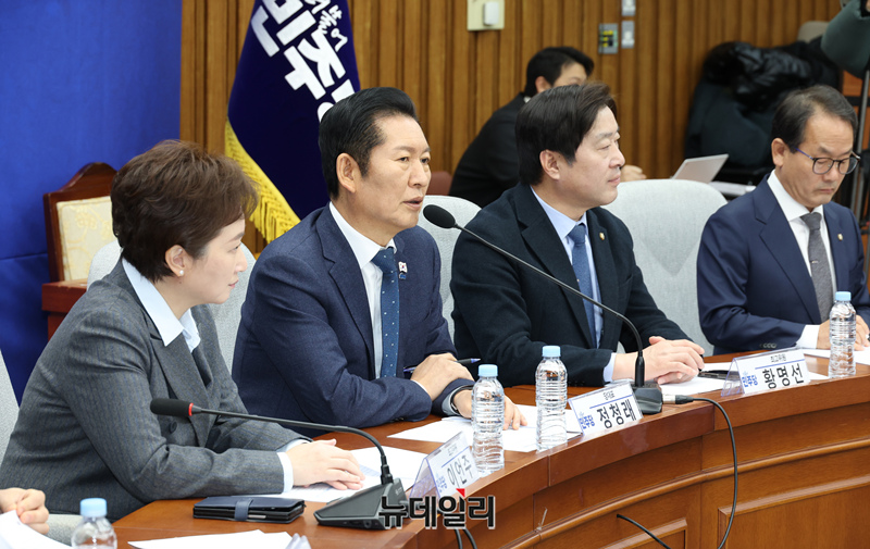 정청래 더불어민주당 대표가 2일 국회에서 열린 시도 당 위원장ㆍ시도 당 지방선거 기획단장 연석회의에서 발언하고 있다.