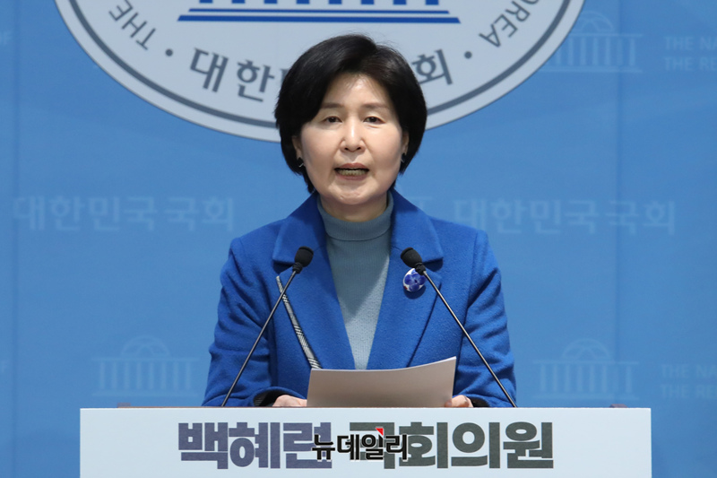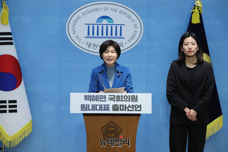 백혜련 더불어민주당 의원이 2일 오후 국회 소통관에서 원내대표 보궐선거 출마선언 기자회견을 하고 있다.