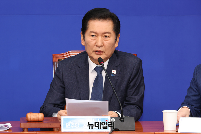 정청래 더불어민주당 대표가 5일 오전 국회에서 열린 최고위원회의에서 모두발언을 하고 있다.