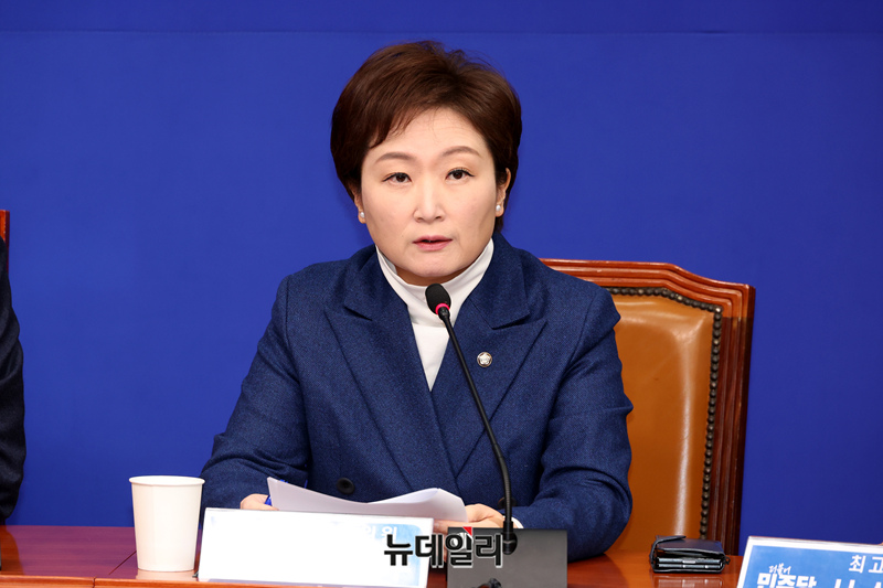 이언주 더불어민주당 최고위원이 5일 오전 국회에서 열린 최고위원회의에서 모두발언을 하고 있다.