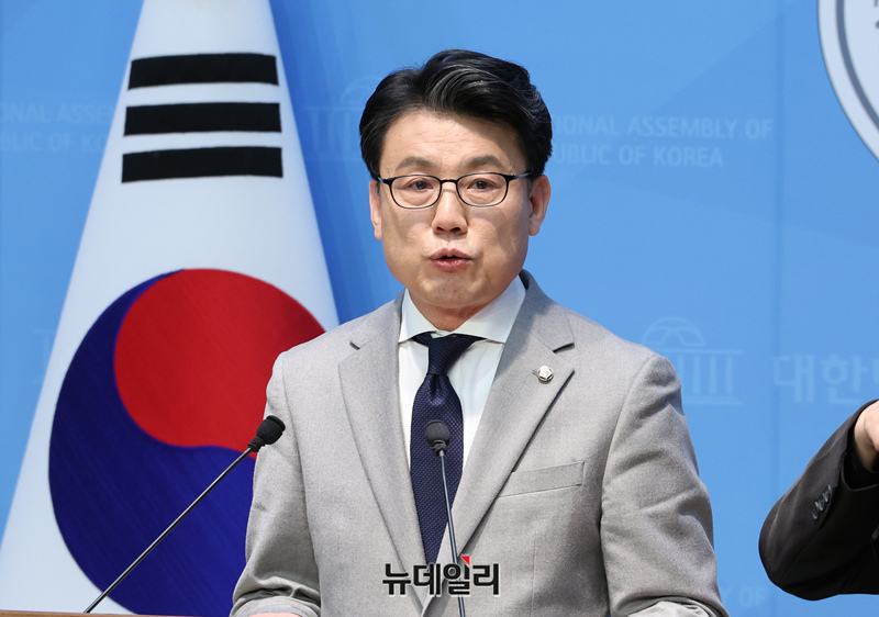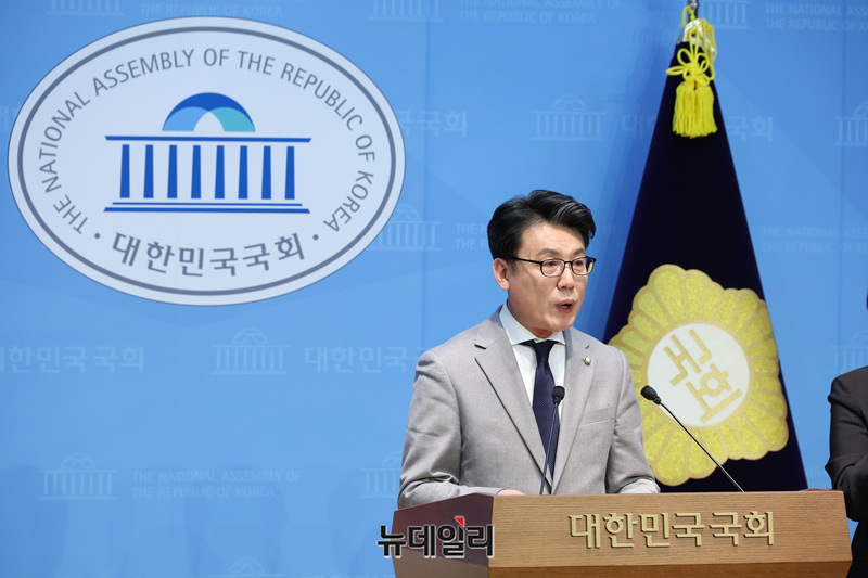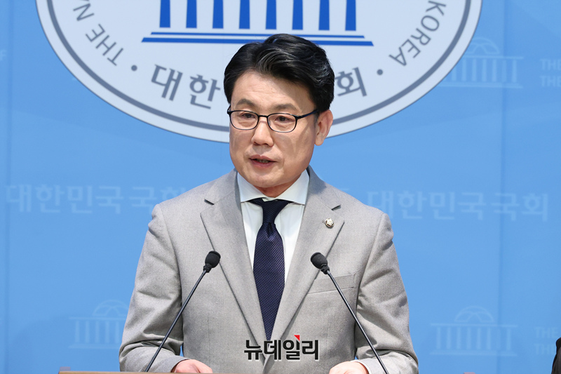 더불어민주당 원내대표 보궐선거에 출마를 선언한 진성준 의원이 5일 국회 소통관에서 정책·공약을 발표하고 있다.