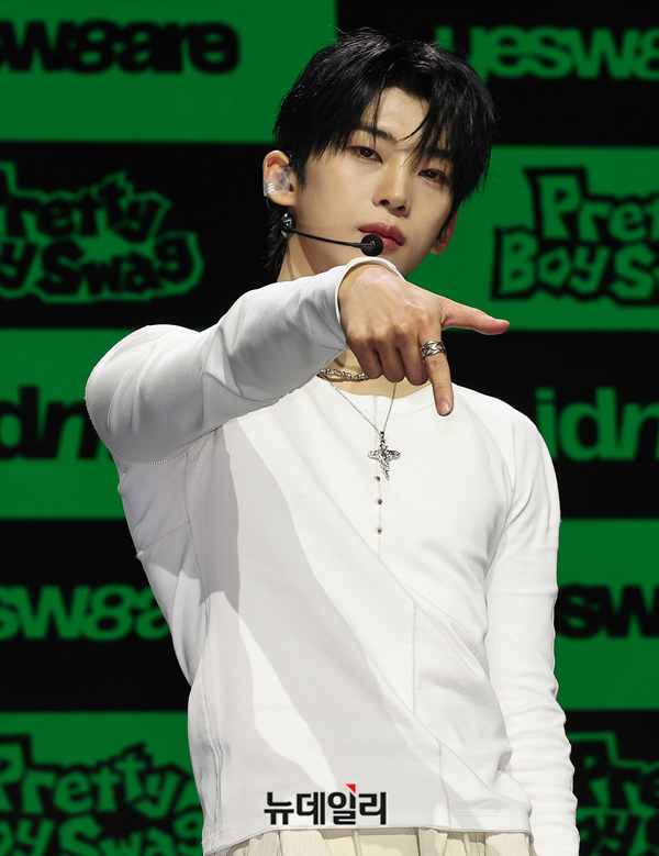 메가 보이밴드 idntt(아이디엔티티) 김도훈이 5일 오후 서울 용산구 블루스퀘어에서 열린 앨범 yesw8are(예스위아) 쇼케이스에서 포즈를 취하고 있다.