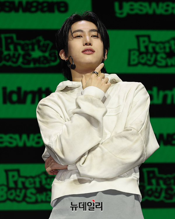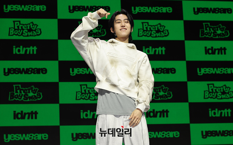 메가 보이밴드 idntt(아이디엔티티) 김주호가 5일 오후 서울 용산구 블루스퀘어에서 열린 앨범 yesw8are(예스위아) 쇼케이스에서 포즈를 취하고 있다.