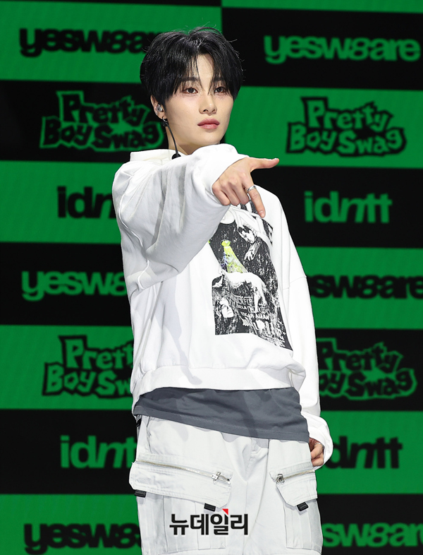 메가 보이밴드 idntt(아이디엔티티) 남지운이 5일 오후 서울 용산구 블루스퀘어에서 열린 앨범 yesw8are(예스위아) 쇼케이스에서 포즈를 취하고 있다.