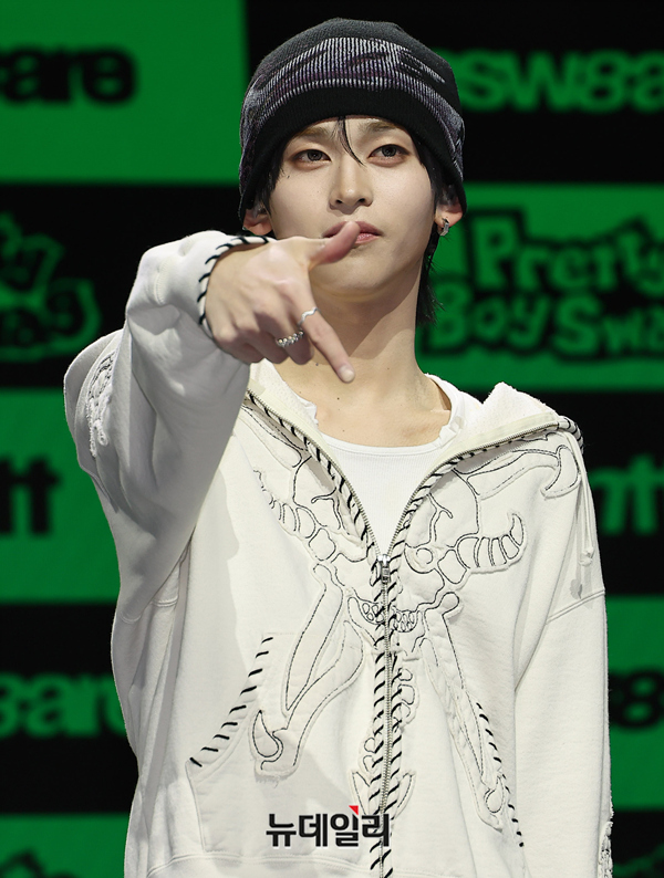 메가 보이밴드 idntt(아이디엔티티) 토와가 5일 오후 서울 용산구 블루스퀘어에서 열린 앨범 yesw8are(예스위아) 쇼케이스에서 포즈를 취하고 있다.