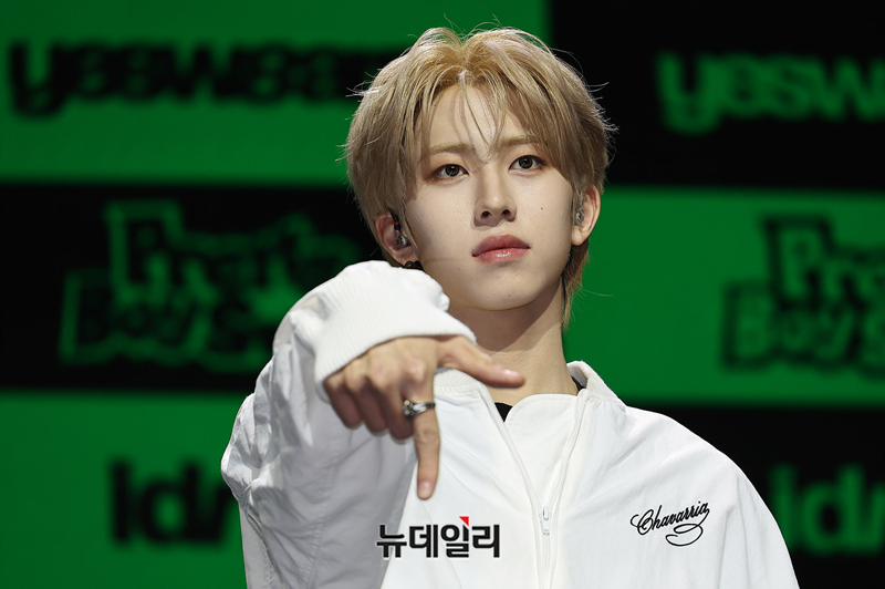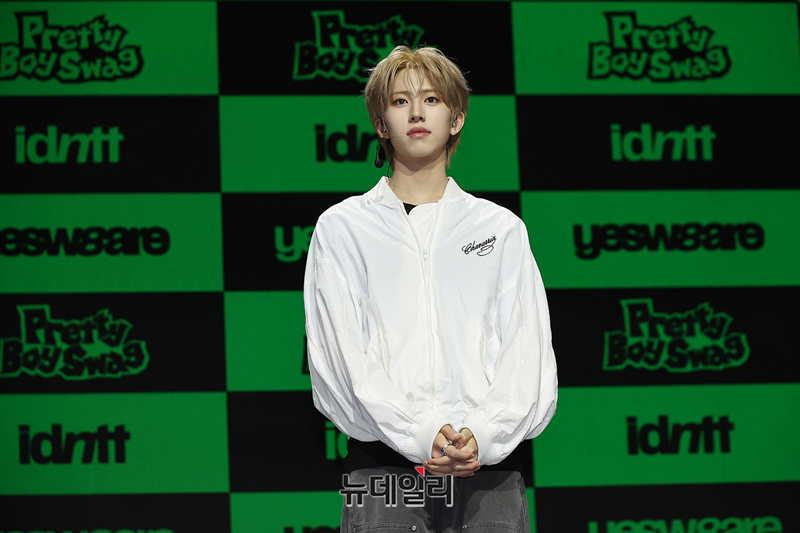 메가 보이밴드 idntt(아이디엔티티) 박누리가 5일 오후 서울 용산구 블루스퀘어에서 열린 앨범 yesw8are(예스위아) 쇼케이스에서 포즈를 취하고 있다.