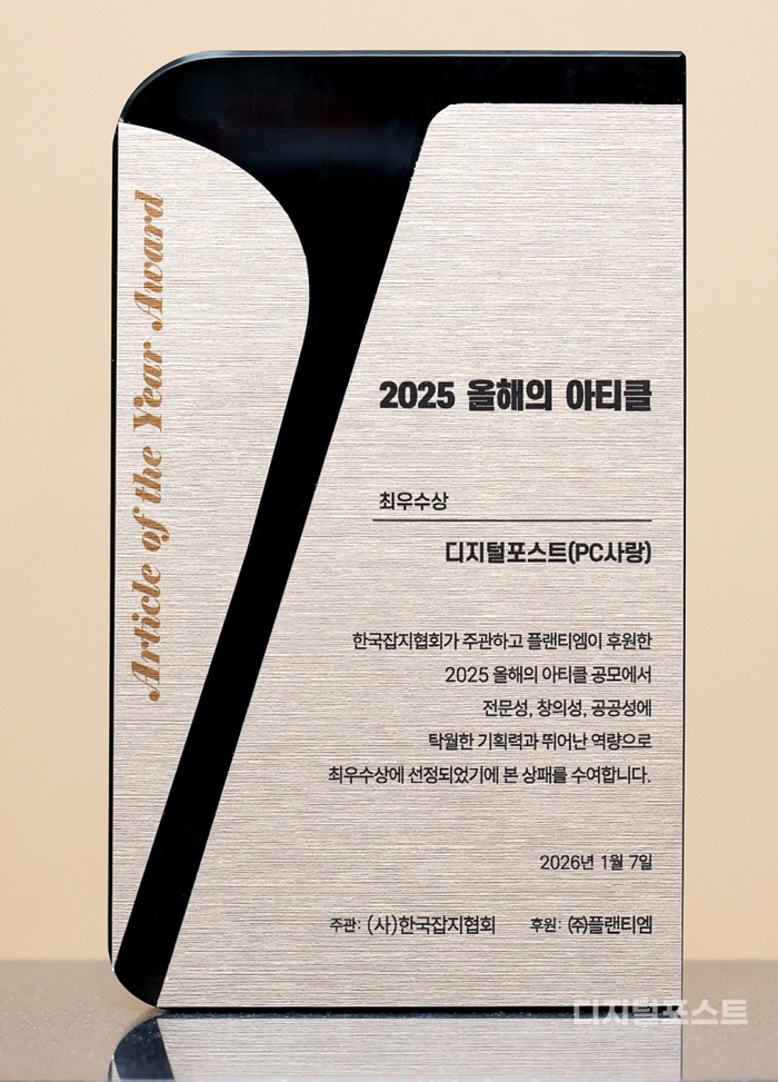 디지털포스트(PC사랑)가 한국잡지협회가 선정한 '2025 올해의 아티클' 시상에서 최우수상(상금 200만 원)을 수상했다.
