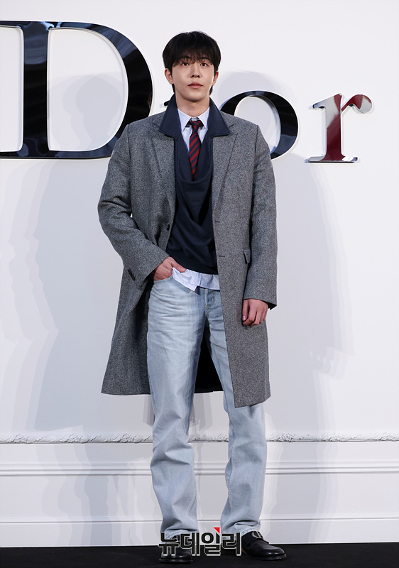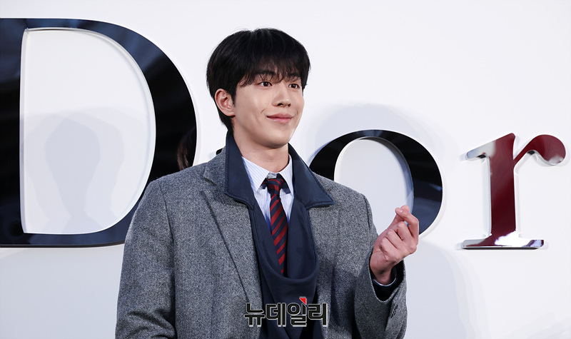 7일 오후 서울 성동구 디올 성수에서 열린 조나단 디올 컬렉션 론칭 기념 포토월에서 포즈를 취하고 있다.