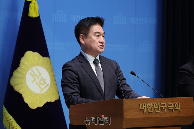 최혁진 무소속 의원이 9일 국회 소통관에서 민법 일부개정법률안 통일교·신천지 방지법 발의 기자회견을 하고 있다.
