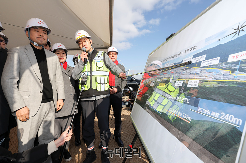 장동혁 국민의힘 대표가 9일 오전 경기 용인시 용인 반도체 클러스터 일반산업단지 공사현에서 관계자의 설명을 듣고 있다. (경기 용인=서성진 기자)