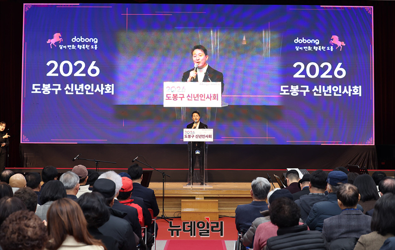 오세훈 서울시장이 9일 오후 서울 도봉구청 선인봉홀에서 열린 2026년 도봉구 신년인사회에서 축사를 하고 있다.