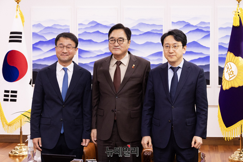 [포토] 기념촬영 하는 우원식 의장과 한병도 민주당 원내대표