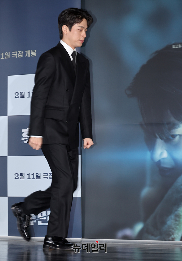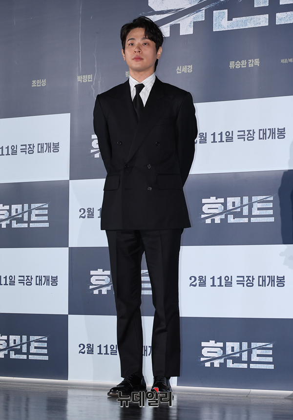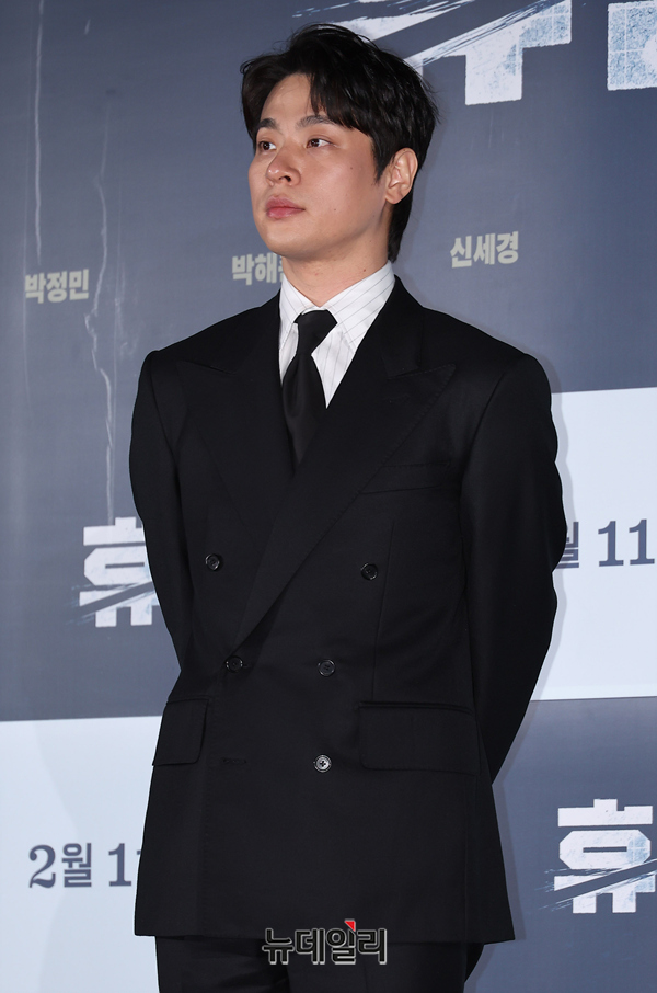 배우 박정민이 12일 오전 서울 광진구 롯데시네마 건대입구점에서 열린 영화 '휴민트(감독 류승완)' 제작보고회에서 포즈를 취하고 있다.