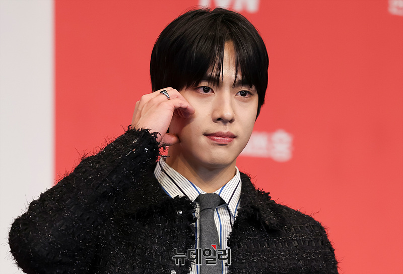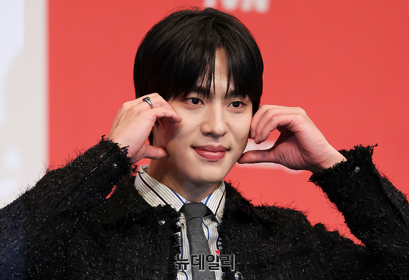 배우 조한결이 12일 오후 서울 구로구 더링크 호텔에서 열린 tvN 새 토일드라마 언더커버 미쓰홍 제작발표회에서 포즈를 취하고 있다.