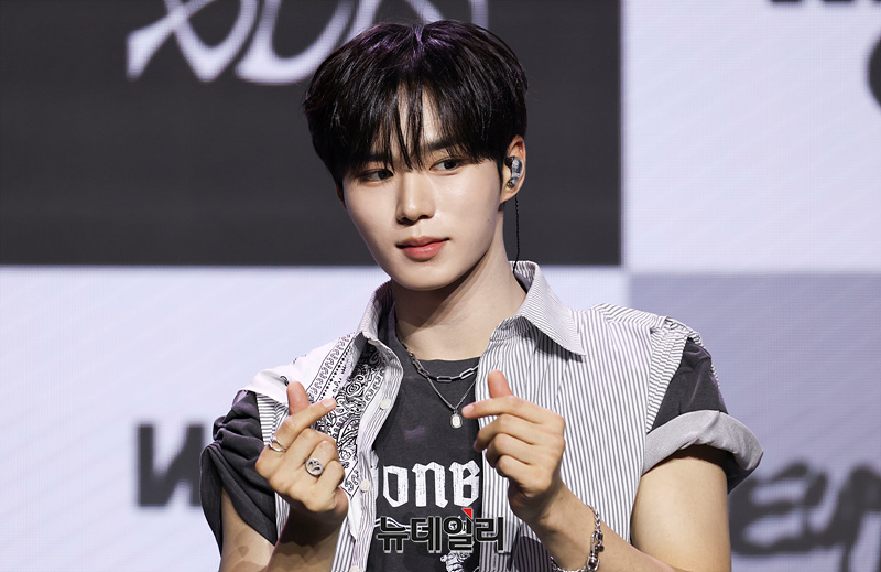 보이그룹 알파드라이브원(ALD1) 준서가 12일 오후 서울 용산구 블루스퀘어 SOL트래블홀에서 열린 미니 1집 'EUPHORIA(유포리아)' 발매 기념 쇼케이스에서 포즈를 취하고 있다.