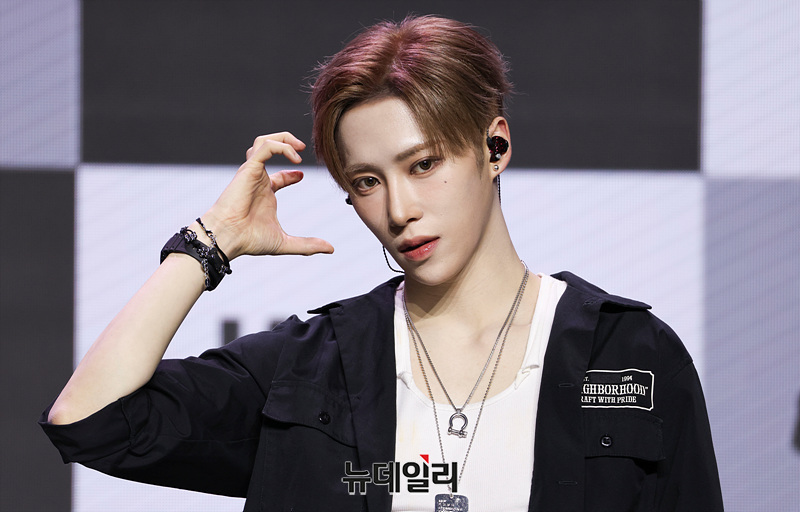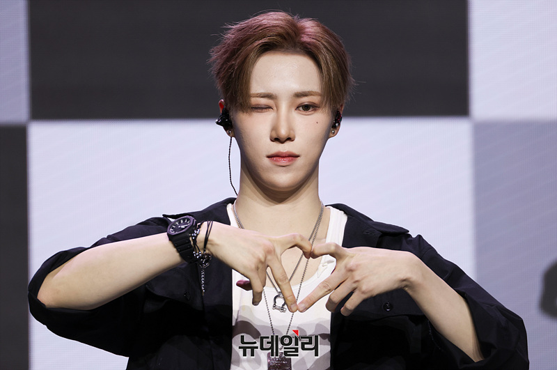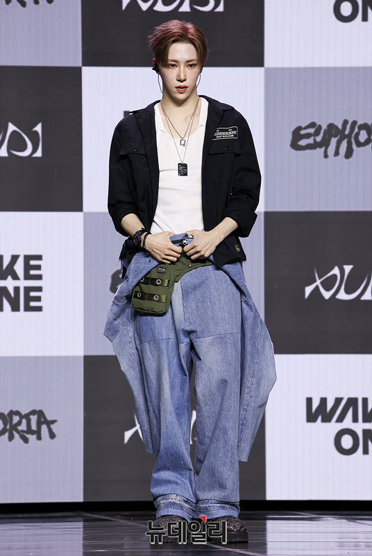 보이그룹 알파드라이브원(ALD1) 아르노가 12일 오후 서울 용산구 블루스퀘어 SOL트래블홀에서 열린 미니 1집 'EUPHORIA(유포리아)' 발매 기념 쇼케이스에서 포즈를 취하고 있다.