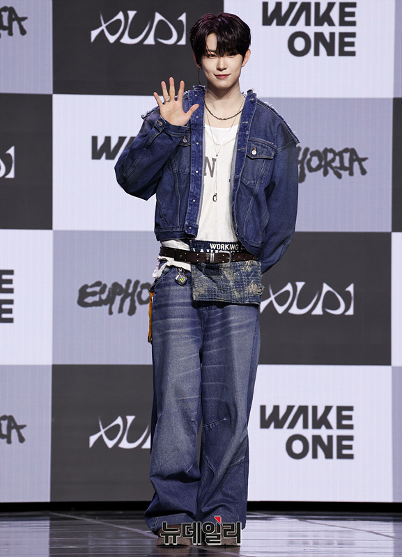보이그룹 알파드라이브원(ALD1) 건우가 12일 오후 서울 용산구 블루스퀘어 SOL트래블홀에서 열린 미니 1집 'EUPHORIA(유포리아)' 발매 기념 쇼케이스에서 포즈를 취하고 있다.