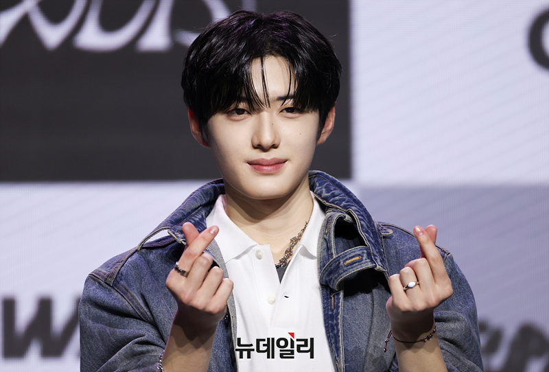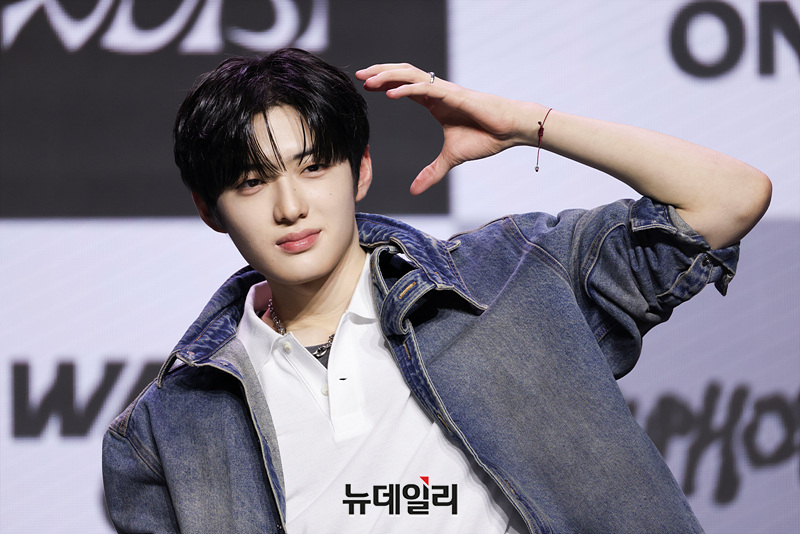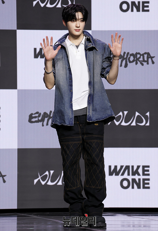보이그룹 알파드라이브원(ALD1) 상현이 12일 오후 서울 용산구 블루스퀘어 SOL트래블홀에서 열린 미니 1집 'EUPHORIA(유포리아)' 발매 기념 쇼케이스에서 포즈를 취하고 있다.