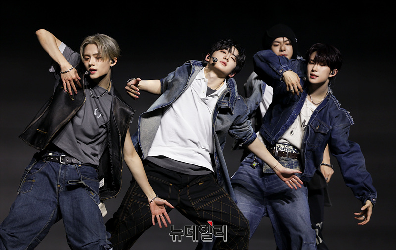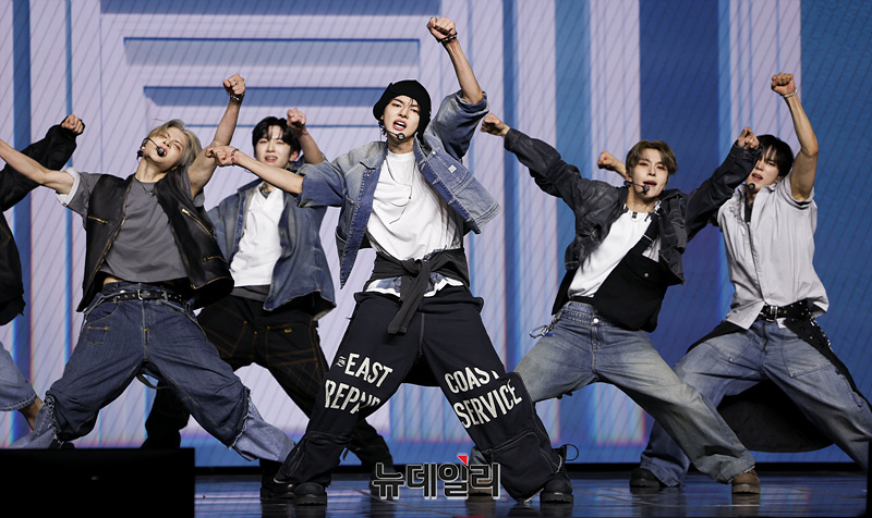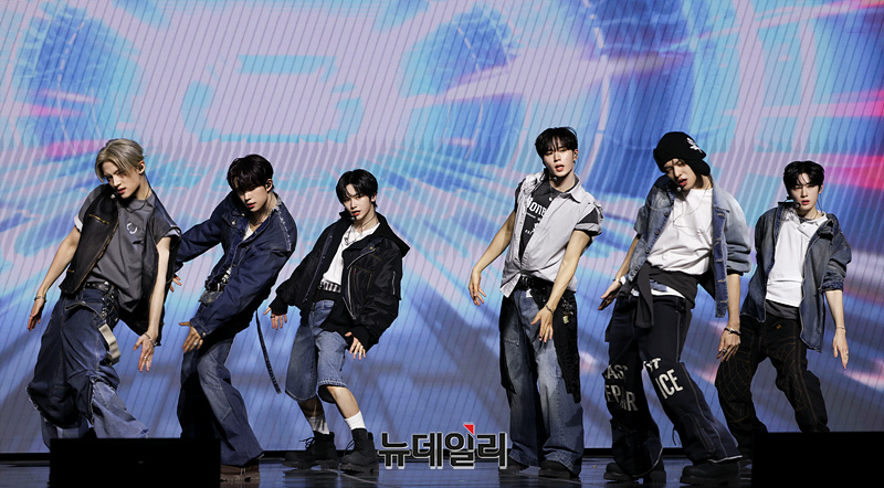 보이그룹 알파드라이브원(ALD1)이 12일 오후 서울 용산구 블루스퀘어 SOL트래블홀에서 열린 미니 1집 'EUPHORIA(유포리아)' 발매 기념 쇼케이스에서 무대를 선보이고 있다.