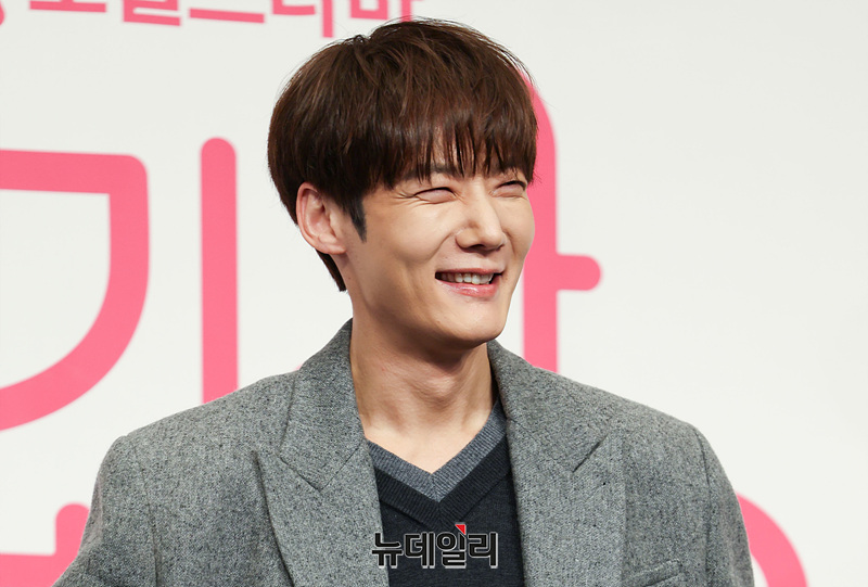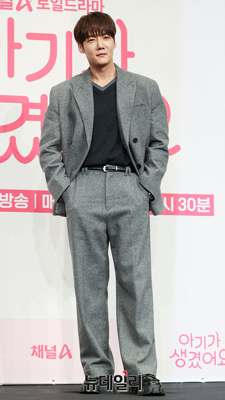 배우 최진혁이 13일 오후 서울 구로구 더링크 호텔에서 열린 채널A 토일드라마 '아기가 생겼어요' 제작발표회에서 포즈를 취하고 있다.
