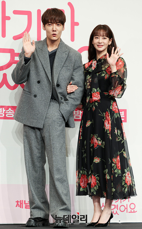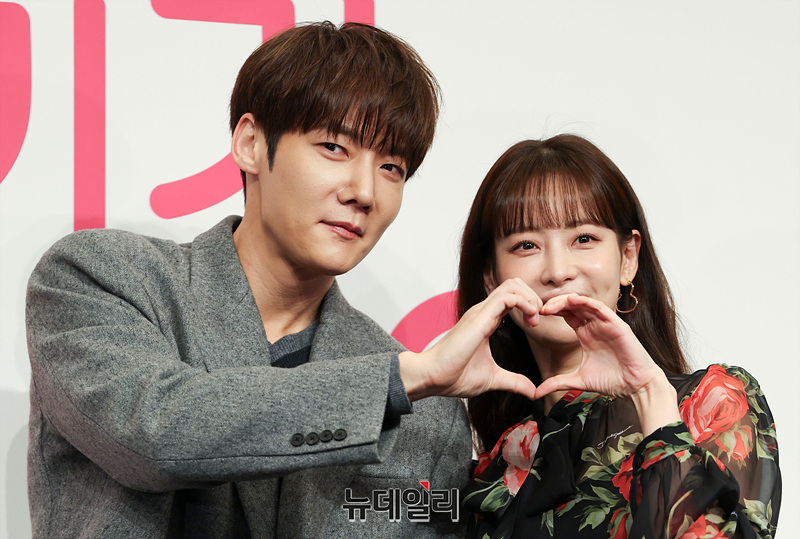 배우 최진혁과 오연서가 13일 오후 서울 구로구 더링크 호텔에서 열린 채널A 토일드라마 '아기가 생겼어요' 제작발표회에서 포즈를 취하고 있다.