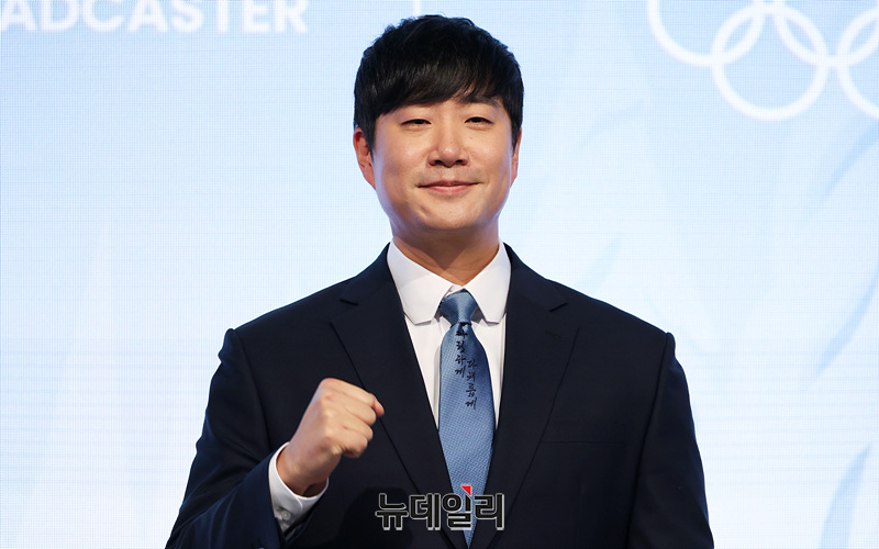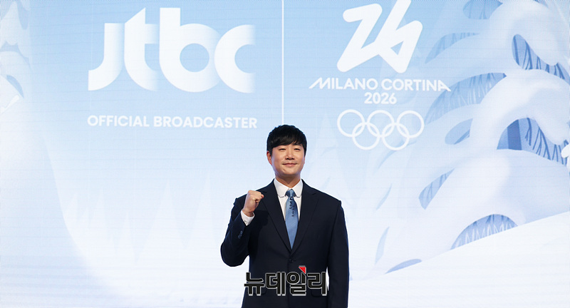 배성재 캐스터가 14일 오후 서울 여의도 페어몬트 앰배서더 서울에서 열린 JTBC '2026 밀라노 코르티나 동계올림픽' 기자간담회에서 포즈를 취하고 있다.