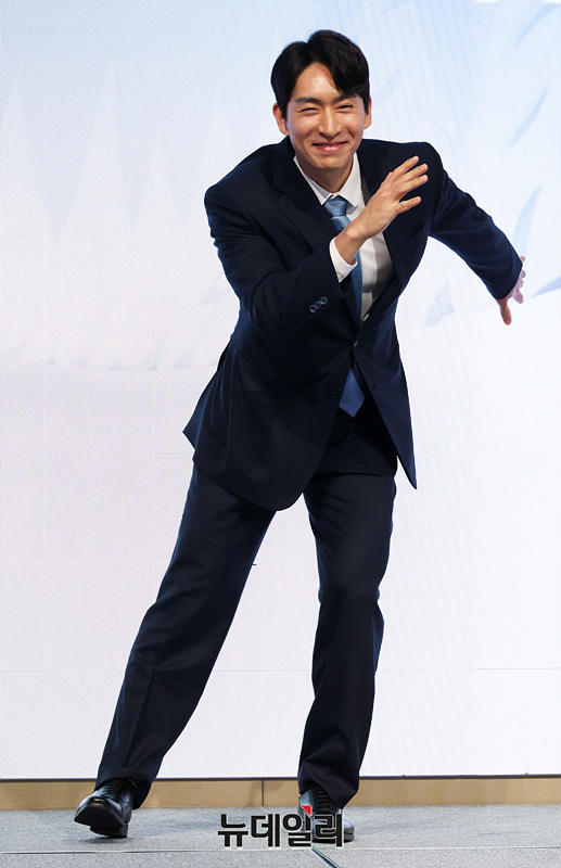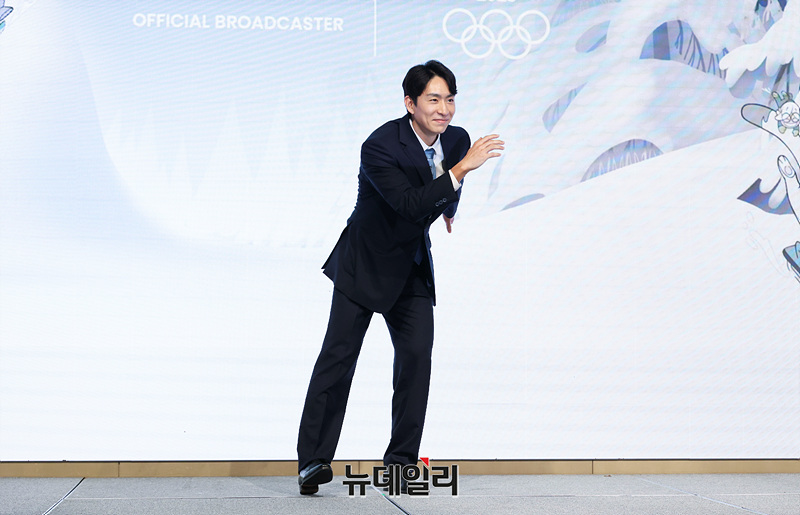 이승훈 해설위원이 14일 오후 서울 여의도 페어몬트 앰배서더 서울에서 열린 JTBC '2026 밀라노 코르티나 동계올림픽' 기자간담회에서 포즈를 취하고 있다.