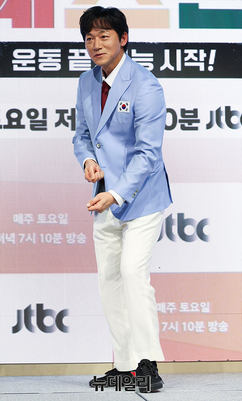 김남일 전 축구선수가 14일 오후 서울 여의도 페어몬트 앰배서더 서울에서 열린 JTBC 예능 '예스맨' 제작발표회에서 포즈를 취하고 있다.