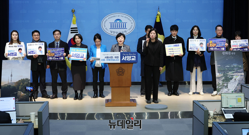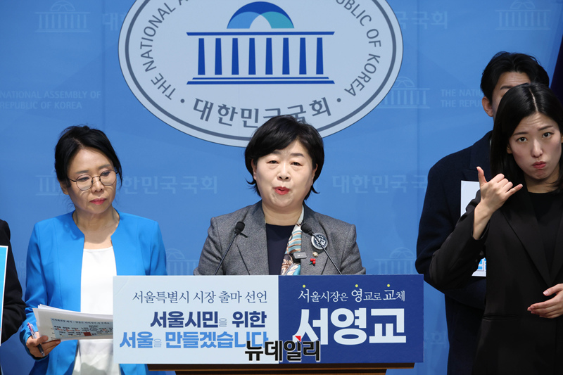 서영교 더불어민주당 의원이 15일 오전 국회 소통관에서 서울시장 출마 선언을 하고 있다.