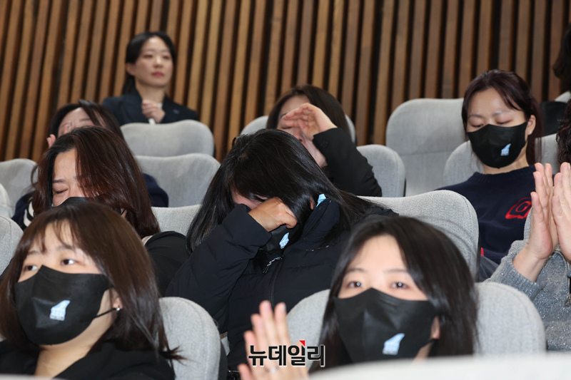[포토] 눈물 흘리는 12·29 무안공항 참사 유가족협의회 유가족들