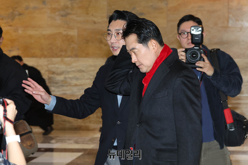 장동혁 국민의힘 대표가 15일 오후 국회 로텐더홀에서 '민주당의 공천 뇌물·통일교 게이트 특검 수용'을 촉구하는 단식농성을 하기 위해 이동하고 있다.