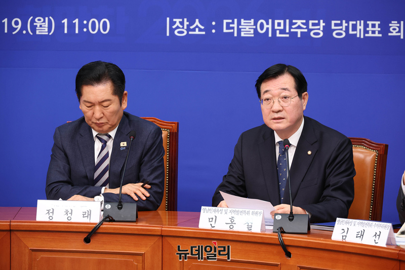 민홍철 더불어민주당 영남특위 위원장이 19일 오전 국회에서 열린 영남인재육성 및 지역발전특별위원회 발대식에서 발언을 하고 있다.