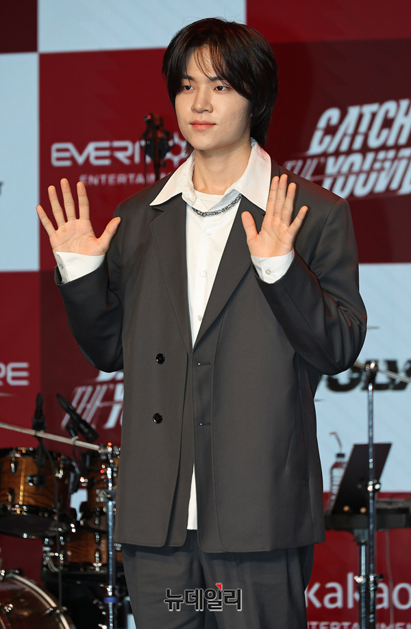밴드 캐치더영(Catch The Young) 강산이가 19일 오후 서울 강남구 일지아트홀에서 열린 첫 번째 정규앨범 'EVOLVE(이볼브)' 쇼케이스에서 포즈를 취하고 있다.타이틀곡 'Amplify(엠플리파이)'는 캐치더영이 데뷔곡 'YOUTH!!!(유스!!!)'에서 확립한 YOUTH POP-ROCK(유스 팝-록) 정체성을 기반으로 한 2026년형 뉴웨이브 록 장르의 트랙이다.'EVOLVE'는 YOUTH POP ROCK(유스-팝 록)을 기반으로 캐치더영이 그간 축적해 온 음악적 경험과 정체성을 집약한 앨범. 총14트랙을 담았다.