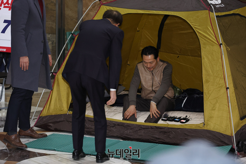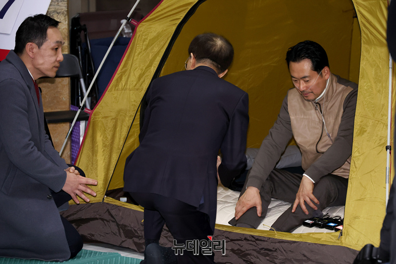 [포토] 장동혁 대표 단식농성장 찾은 이석연 국민통합위원장