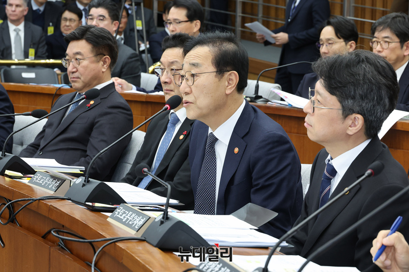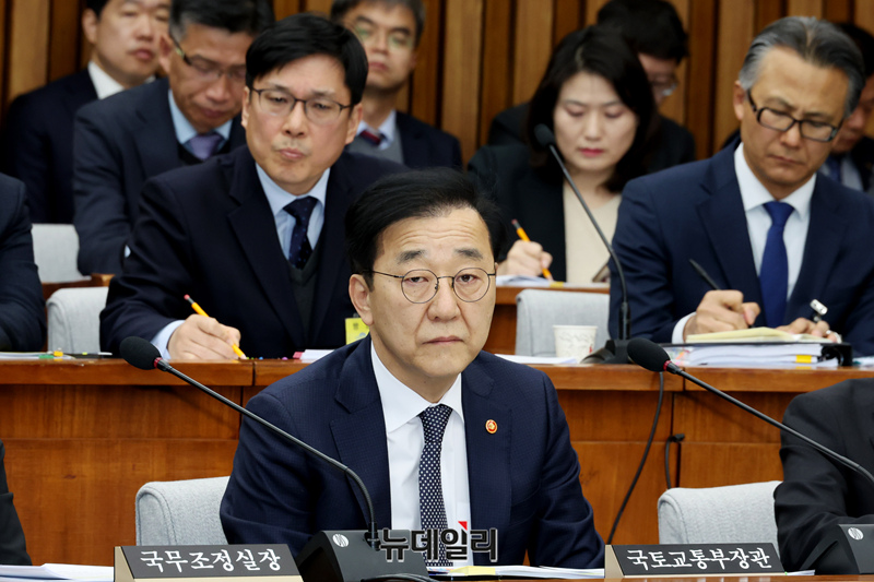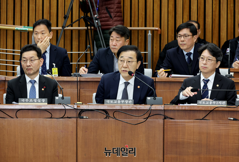 김윤덕 국토교통부 장관이 22일 국회에서 열린 12.29 여객기 참사 진상규명을 위한 국정조사특별위원회 청문회에서 의원들의 질문에 답하고 있다.