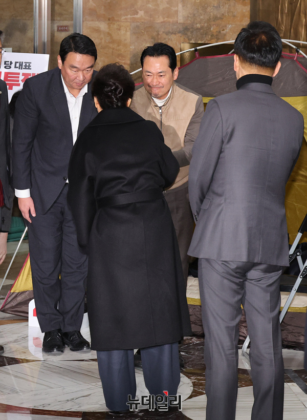 박근혜 전 대통령이 22일 오전 더불어민주당에 쌍특검(통일교·공천헌금 의혹 특검) 도입을 촉구하며 8일째 단식 농성을 이어가고 있는 장동혁 국민의힘 대표를 찾아 단식 중단을 권하고 있다.