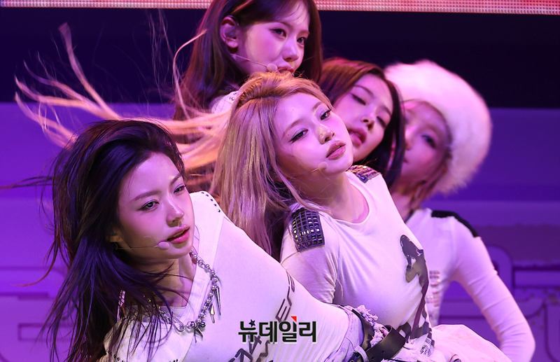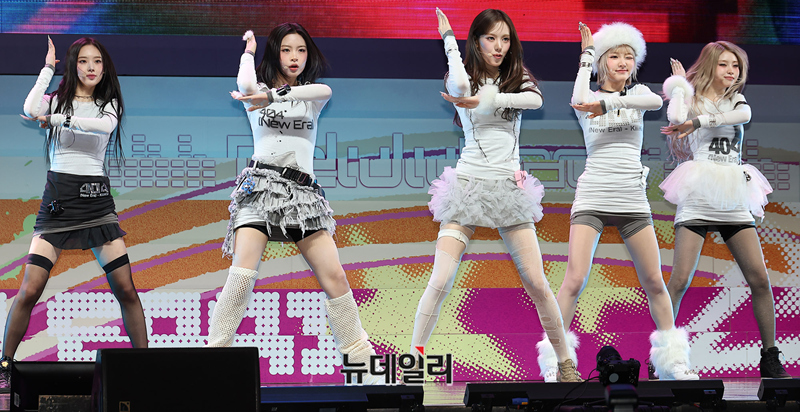 걸그룹 키키(지유 이솔 수이 하음 키야)가 26일 오후 서울 광진구 예스24 라이브홀에서 열린 두번째 EP앨범 DeluluPack(델룰루팩) 쇼케이스에서 타이틀곡 404 무대를 선보이고 있다.