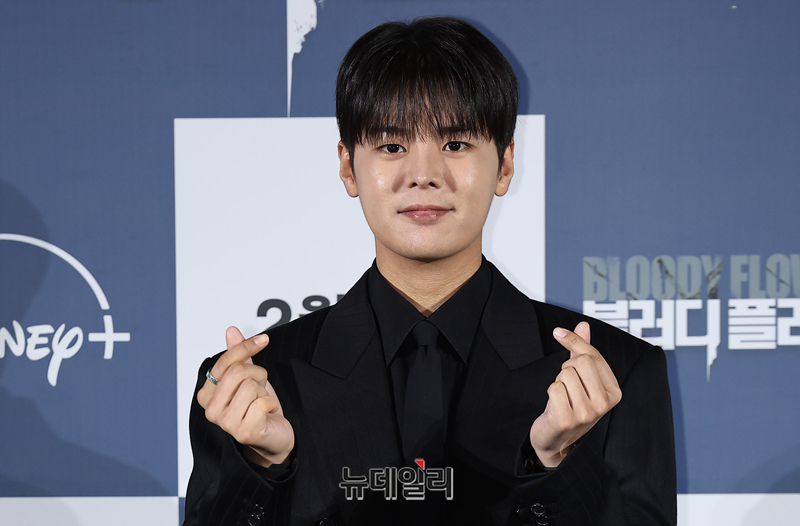 배우 려운이 27일 오전 서울 CGV 용산아이파크몰에서 열린 디즈니+ '블러디 플라워' 제작발표회에서 포즈를 취하고 있다.