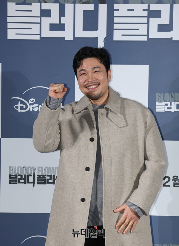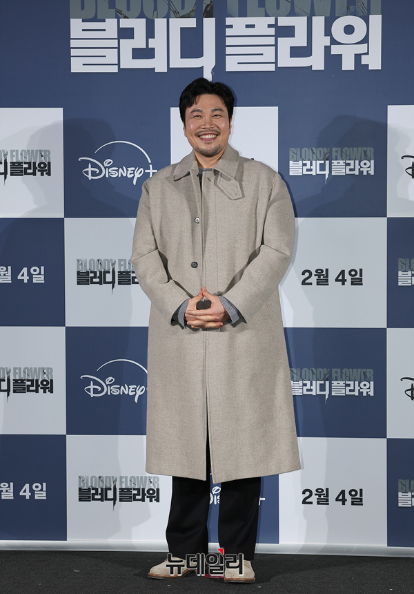 배우 신승환이 27일 오전 서울 CGV 용산아이파크몰에서 열린 디즈니+ '블러디 플라워(연출 한윤선)' 제작발표회에서 포즈를 취하고 있다.
