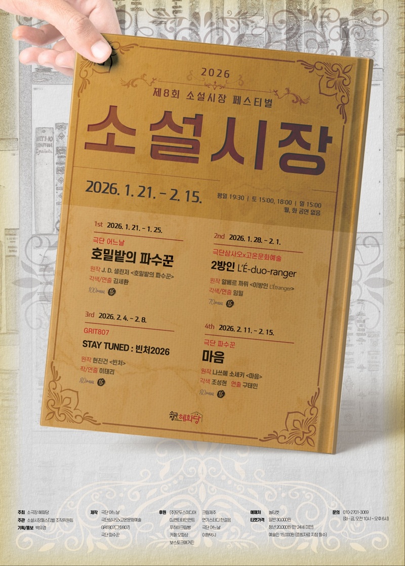 제작은 극단 'GRIT807'이 맡았으며, 'BuskingPlay'와 '코튼캔디뮤직'이 후원한다. 본 공연은 '소극장 혜화당'이 주최하고, '소설시장 페스티벌 조직위원회'가 주관한다.